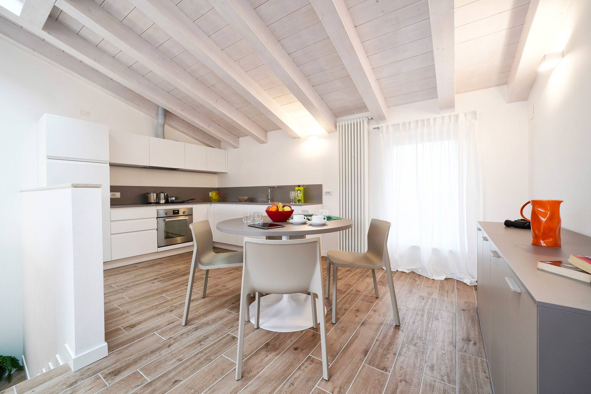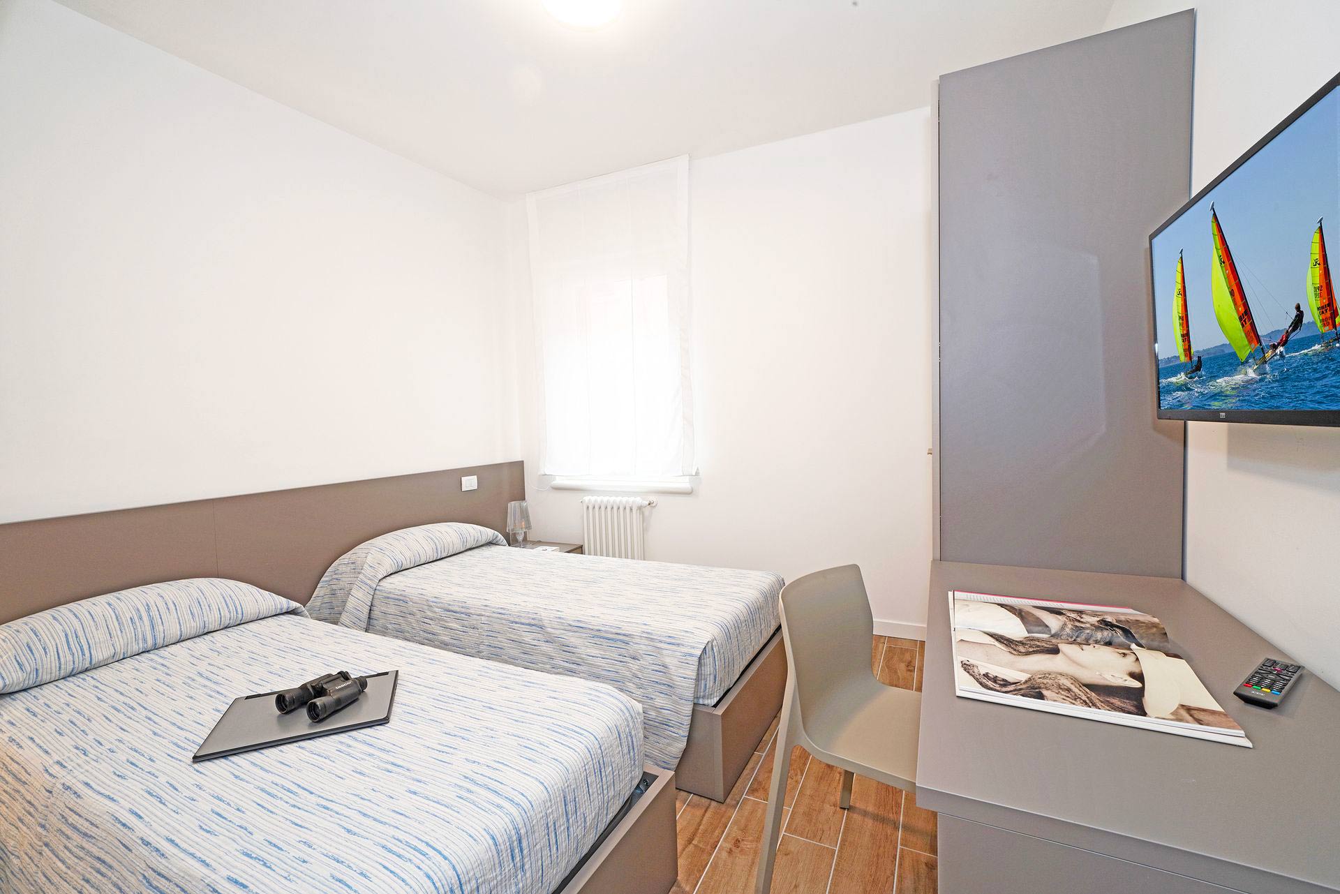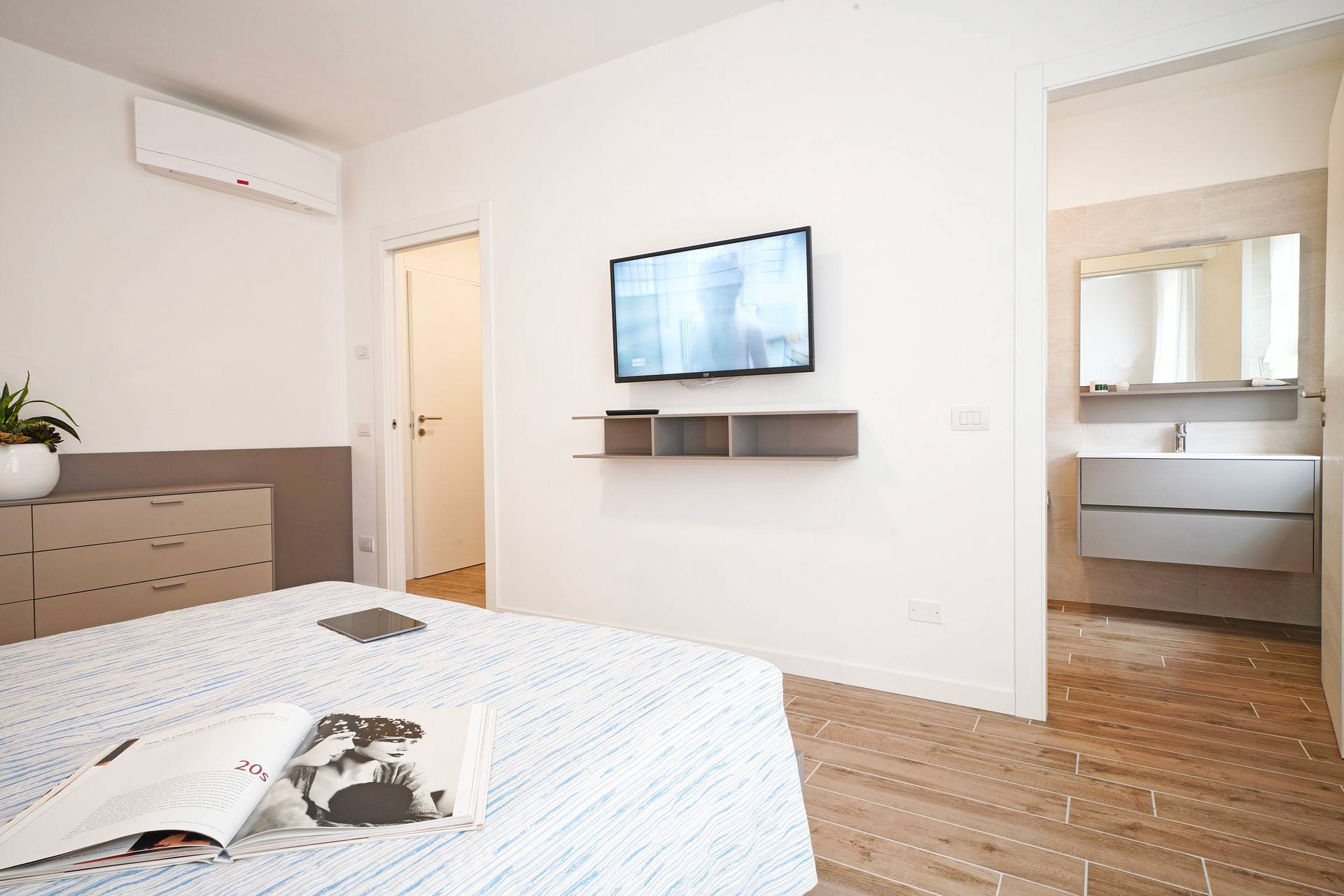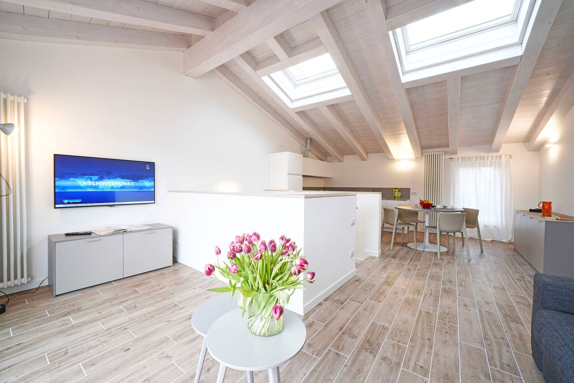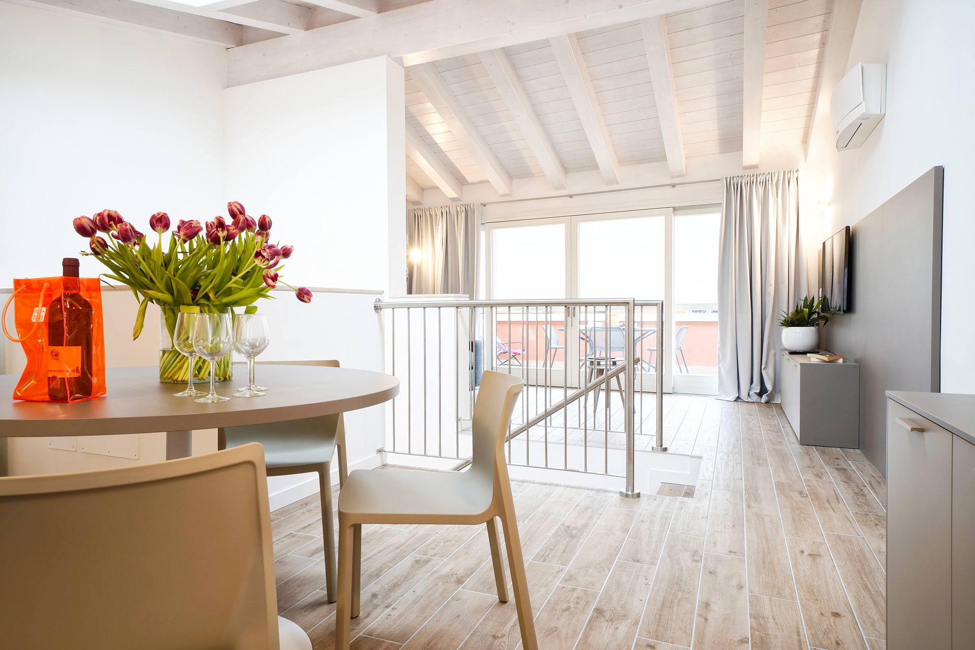 I due appartamenti, situati all’ultimo piano senza ascensore, sono spaziosi e arredati in stile moderno. Ogni appartamento dispone di aria condizionata, riscaldamento, TV a schermo piatto nel soggiorno e in entrambe le camere da letto; oltre a lavatrice e cucina completamente attrezzata con lavastoviglie, microonde, forno, macchina per caffè americano e moka. E la parte migliore? Relax in terrazza con tavolo, sedie e vista parziale sul lago.